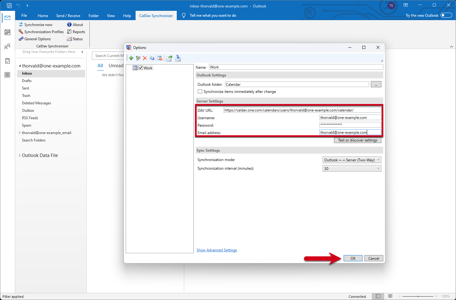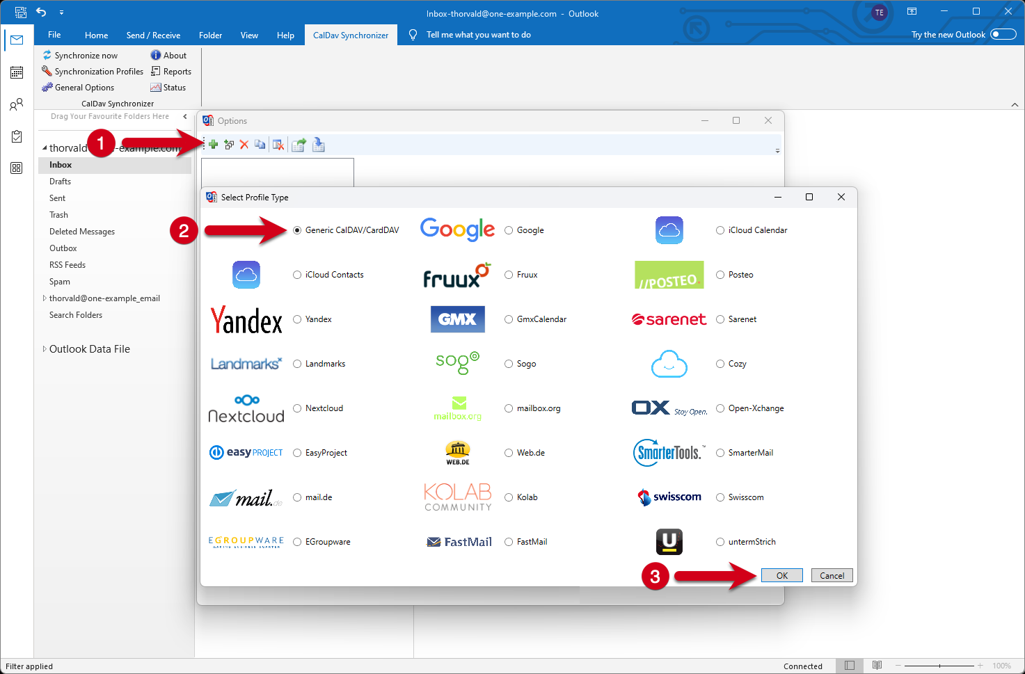 Restart Outlook. After installation, you should see a CalDAV Synchronizer tab in Outlook’s ribbon (toolbar).