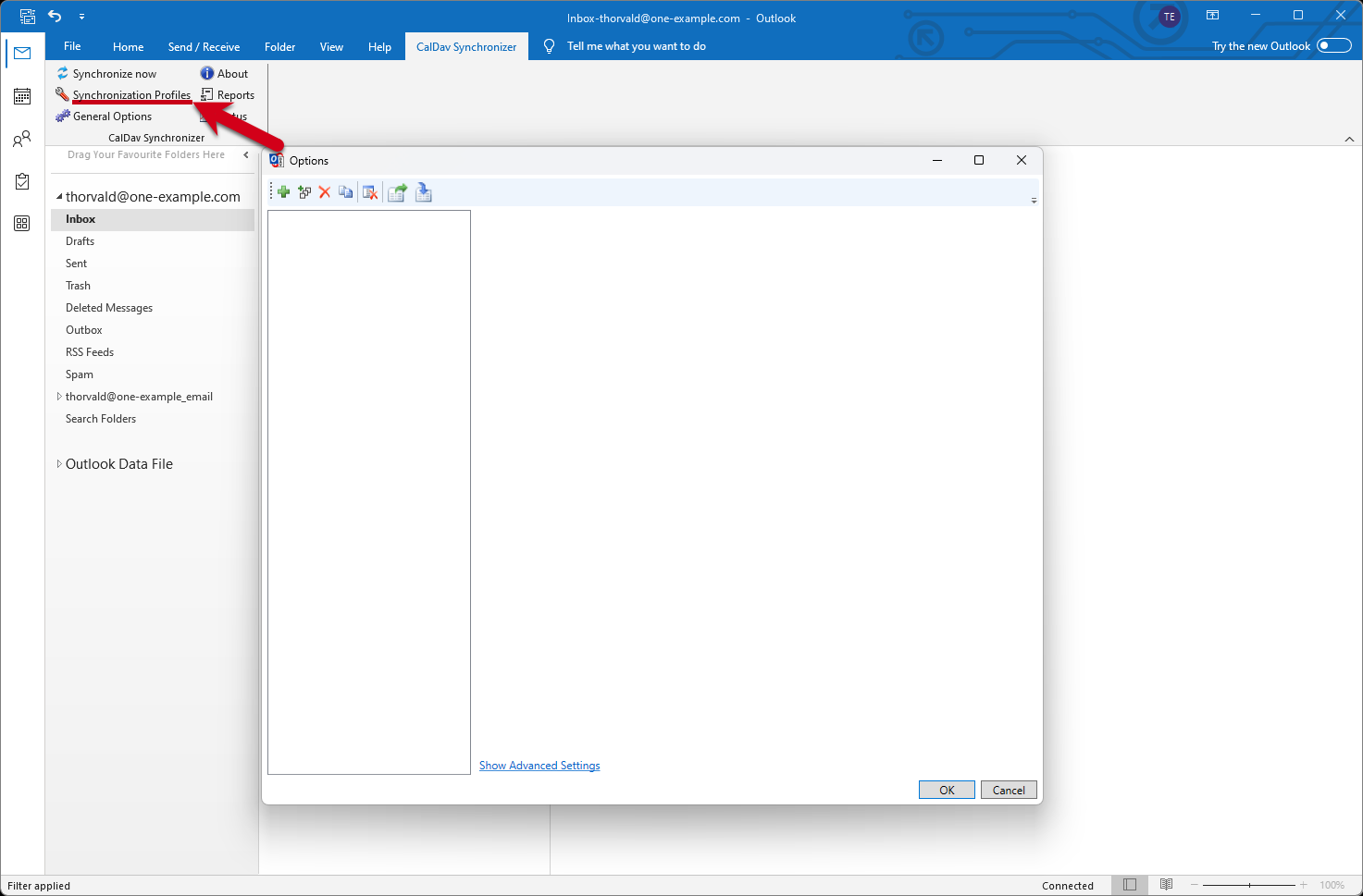 En Outlook, haz clic en la pestaña CalDAV Synchronizer.