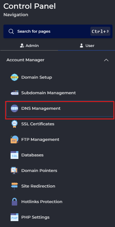 DirectAdmin ofrece herramientas de administración DNS para configurar registros A, CNAME, MX y DNSSEC. Estos registros garantizan que tu dominio se resuelva correctamente para sitios web, correo electrónico y seguridad DNS.